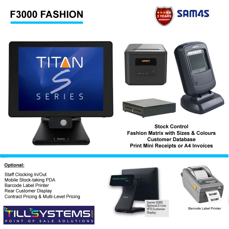 We offer a choice from sophisticated Windows-based Fashion EPoS Systems and our more affordable range of Android-based Fashion EPoS Systems. With both types of pos systems, there are no ongoing monthly or annual fees for our standard packages. Barcode scanning with basic stock control is included as standard in all our fashion till systems, and all our systems support the Fashion Matrix to simplify different sizes, colours and materials. With our Android systems, we also offer payment integration with Teya, SumUp and Zettle card machines.