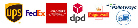 We ship using either UPS, FedEx, Parcelforce or DPD for most tracked and insured parcel deliveries. For small packets, we use Royal Mail '1st Class Signed For' where the order value is below £50, or Royal Mail 'Special Delivery' otherwise. For larger orders requiring palletised delivery we use Palletways. For same-day or timed deliveries, we use our own delivery vehicles or a contracted delivery service partner.